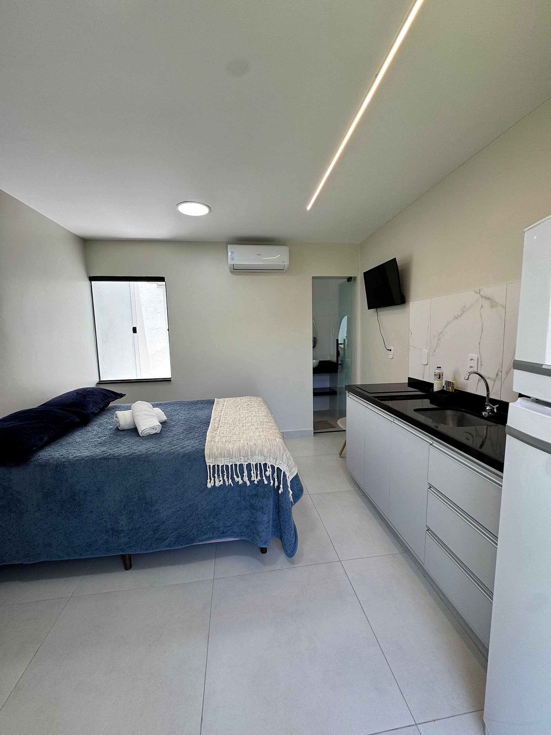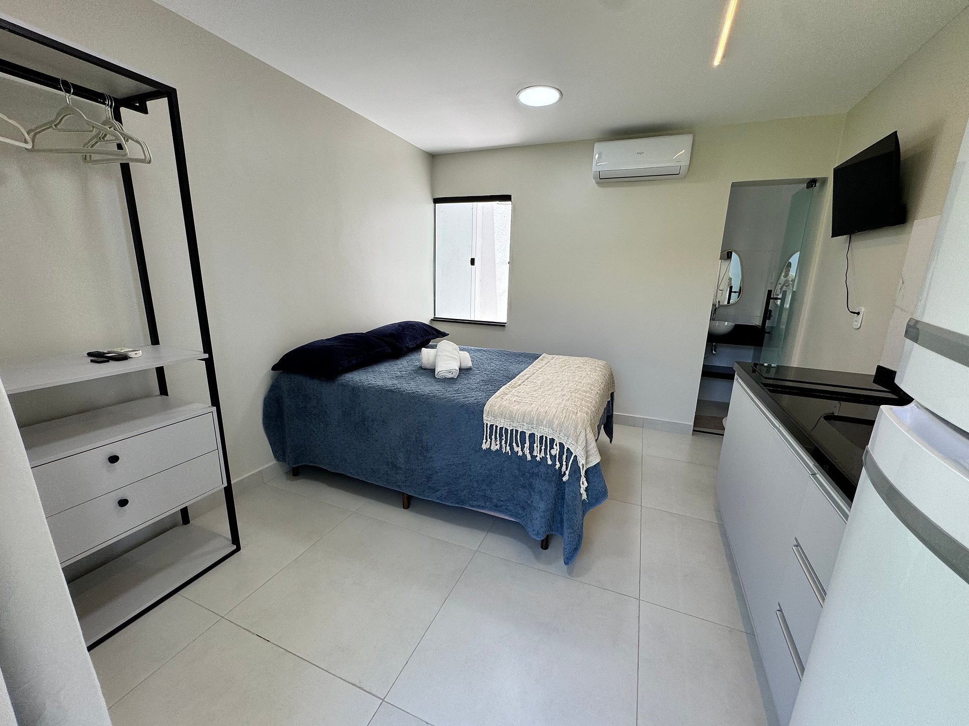 O espaço conta com cama confortável, ar-condicionado, Wi-Fi rápido, TV e banheiro privativo. Tudo pensado para que você relaxe e se sinta em casa.